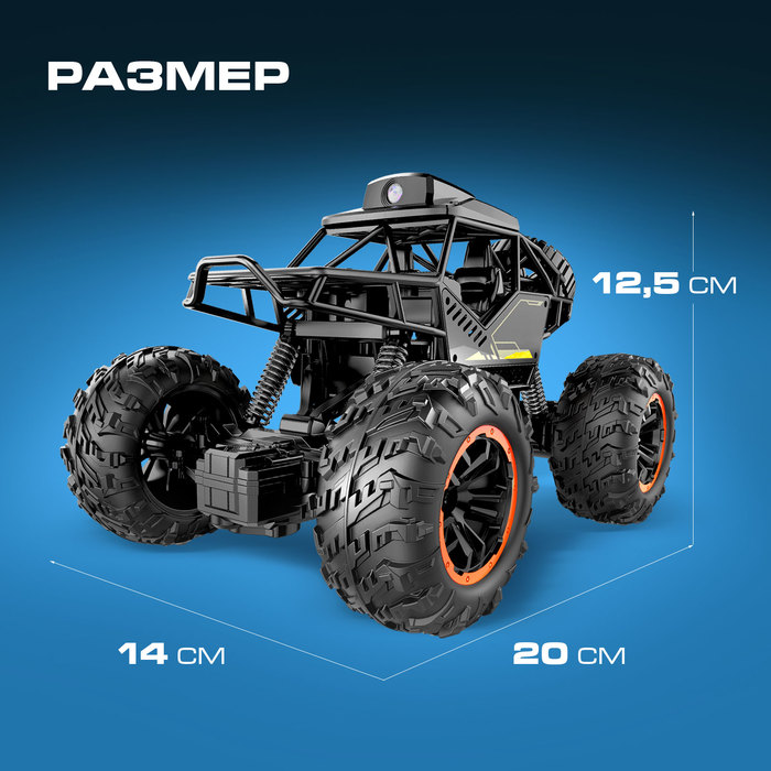 Радиоуправляемая машина-вездеход способна проехать там, где для легковых авто дороги нет! Большие колёса и высокая пружинная подвеска помогут преодолеть любые препятствия.