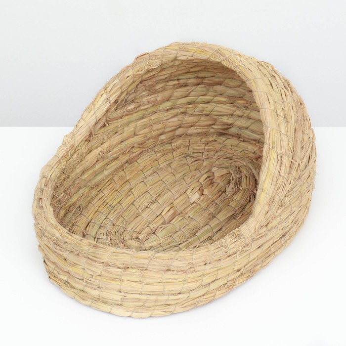 Уютная лежанка для кошек, котов и собак мелких пород, а также грызунов подарит комфортный отдых вашему любимцу даже в самый жаркий солнечный день!Изделие выполнено из экологичных материалов - хлопка и рогоза, материалы не имеют химической пропитки, поэтому не вызовут аллергической реакции у вашего любимца.Лежак для кошек имеет форму «люльки», лежанка оснащена небольшим козырьком, который будет защищать вашего любимца от попадания солнечных лучей, образуя тенек, и поможет наслаждаться комфортным отдыхом.Благодаря материалам и особому плетению, лежанка воздухопроницаемая, что позволяет животному не перегреваться.Удобные и высокие бортики будут служить поддержкой под голову, создадутся защитную атмосферу для вашего питомца и поспособствуют крепкому сну.Лежанка легка в уходе, вы сможете сэкономить свое время на уборке и не прилагать большие усилия, ведь ее можно стирать в машинке на деликатном режиме.Вы можете выбрать в наполнение лежанки любую подушечку, опираясь на вкус и на физические особенности вашего питомца. Такая лежака станет настоящим арт-объектом вашего дома, и не сможет оставить никого равнодушным, вы сможете брать ее с собой на дачу, или же разместить на балконе или подоконнике.Вы сможете использовать ее не только как лежанку, но и дополнением к вашим совместным фотосессиям для более эстетичного и интересного кадра.