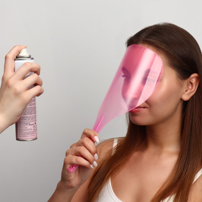 Экран для защиты лица, с ручкой, в розовом цвете.