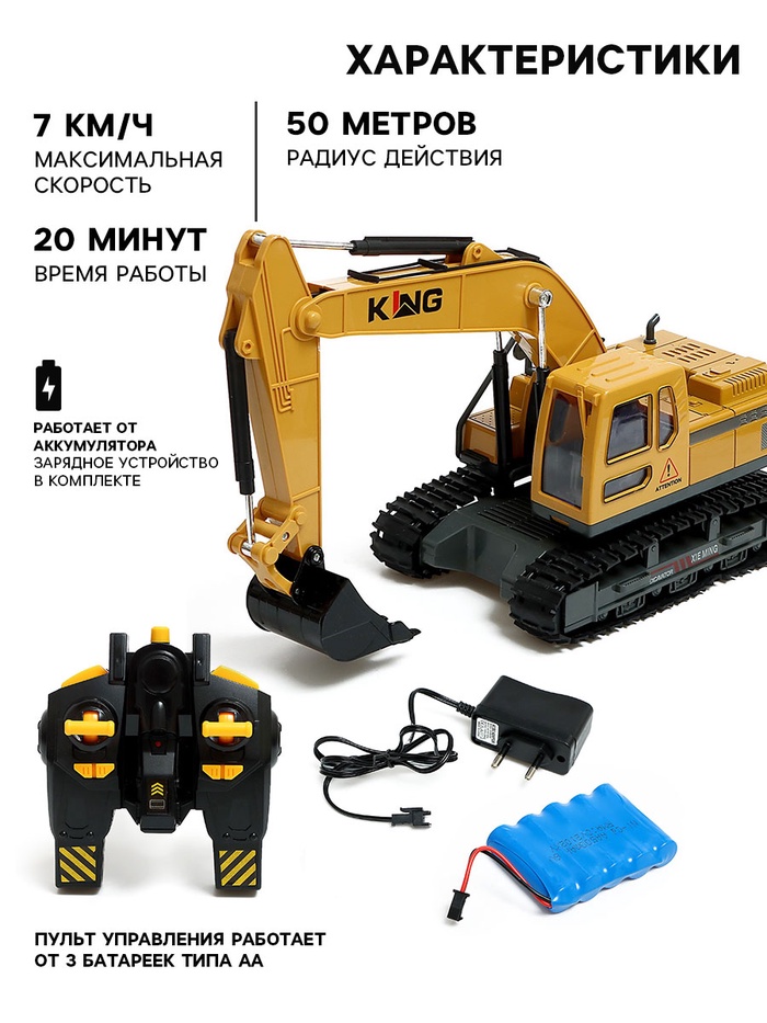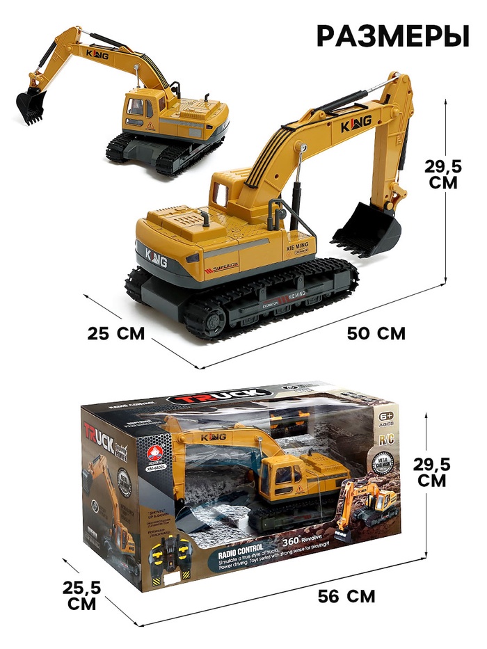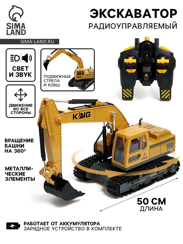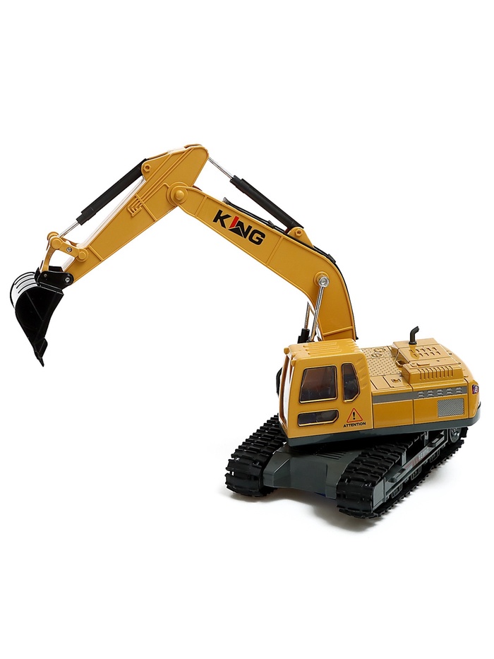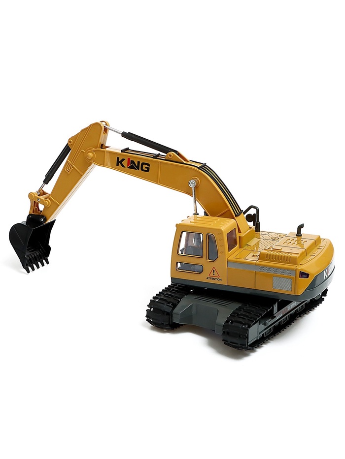 Экскаватор на радиоуправлении со световыми и звуковыми эффектами — необходимая игрушка в коллекции мальчика, который увлекается строительной техникой.