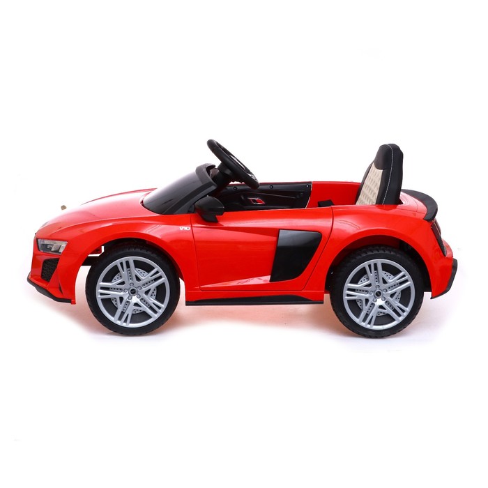 Электромобиль AUDI R8 SPYDER — это лицензионная детская машинка-копия полноразмерного автомобиля. Два мотора позволяют разогнаться до 3–6 км/ч. Это достаточная скорость для катания по парку, двору или саду. Отлично подойдёт детям от 3 лет.