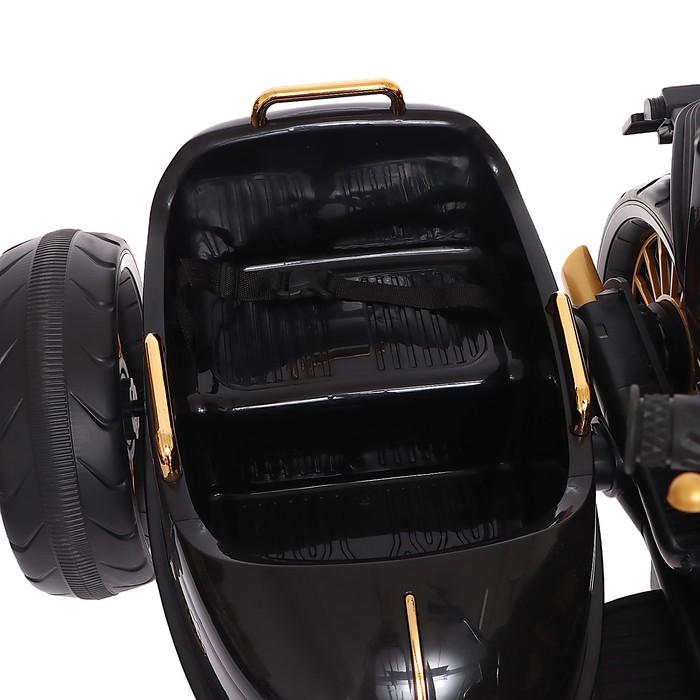 Стань королём дороги на своём первом чоппере! Чёрный электромотоцикл с коляской – это стильный и надёжный транспорт для мальчиков. Прочный, безопасный и яркий, он станет любимой игрушкой для игр как дома, так и на улице.