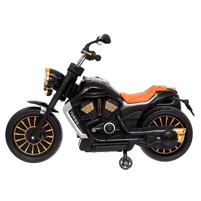 - Стильный дизайн: классический чёрный цвет и удобная коляска делают этот мотоцикл похожим на настоящий чоппер. Световые эффекты добавляют реализма, а звуковые эффекты создают атмосферу настоящей езды. Теперь ваш маленький гонщик сможет почувствовать себя взрослым байкером.