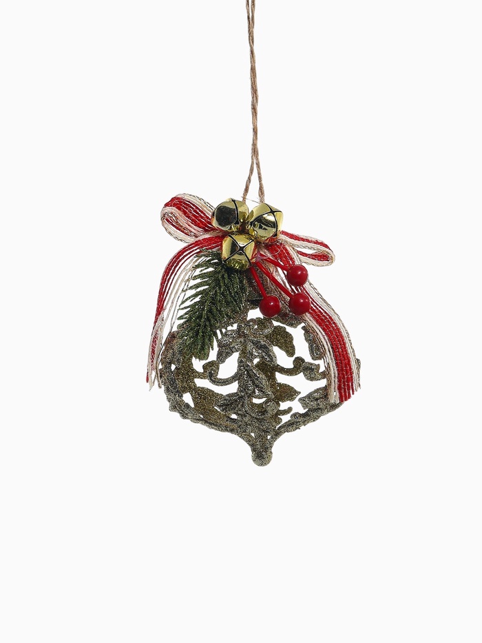 Это украшение оживляет ёлку, отражая свет гирлянд и наполняя пространство теплом и уютом. Изящный узор и форма помогают сделать декор более выразительным и запоминающимся, создавая атмосферу настоящего торжества.
