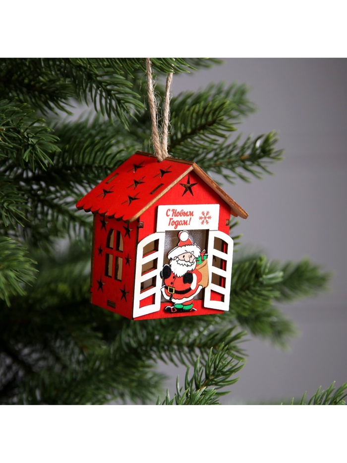Изготовленный из дерева, домик с Дедом Морозом освещает пространство тёплым белым сиянием, создавая уютную и праздничную атмосферу. Благодаря встроенному светодиоду, работающему от батареек, игрушка может быть размещена в любом месте, будь то ветки ёлки или полки в вашем доме. Его размеры 8.7x4.6 см делают его удобным для размещения и достаточно заметным.