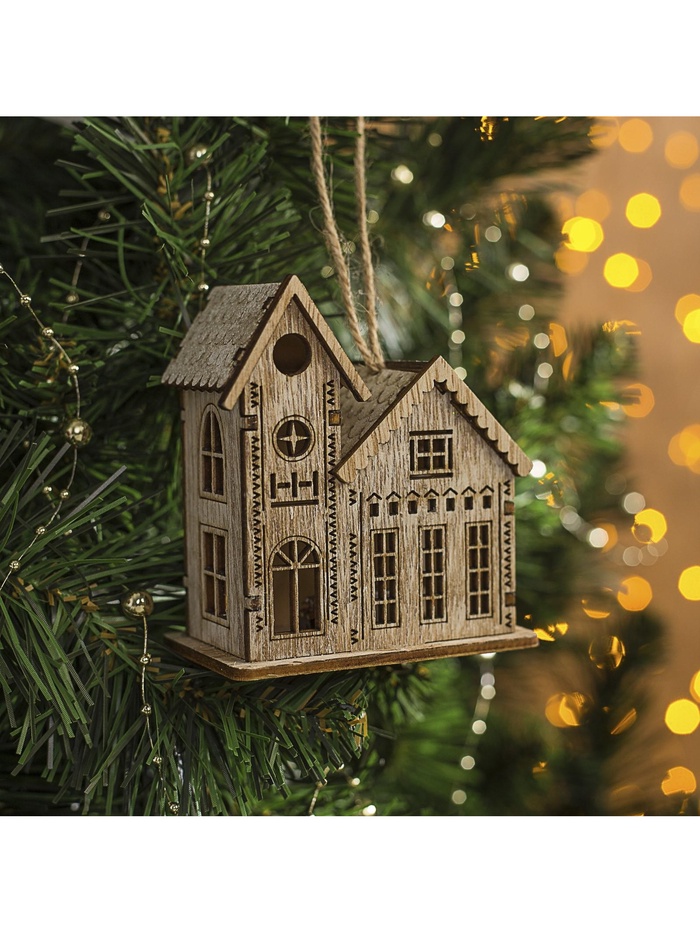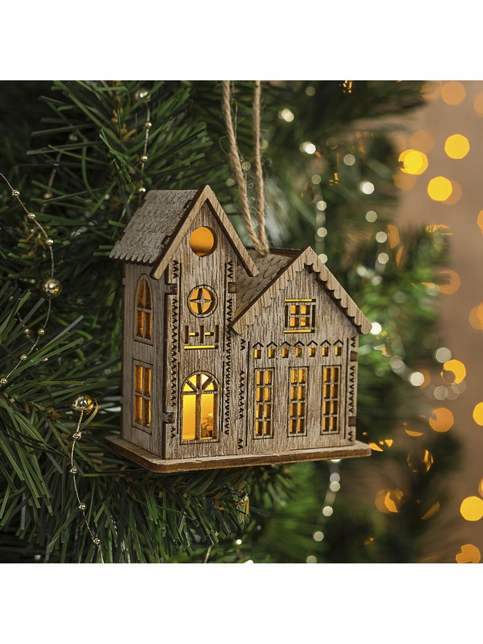 Ёлочная игрушка «Домик с башней», от батареек, свечение тёплое белое