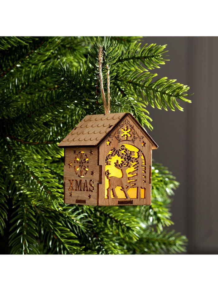 Ёлочная игрушка «Домик с оленем», от батареек, свечение тёплое белое