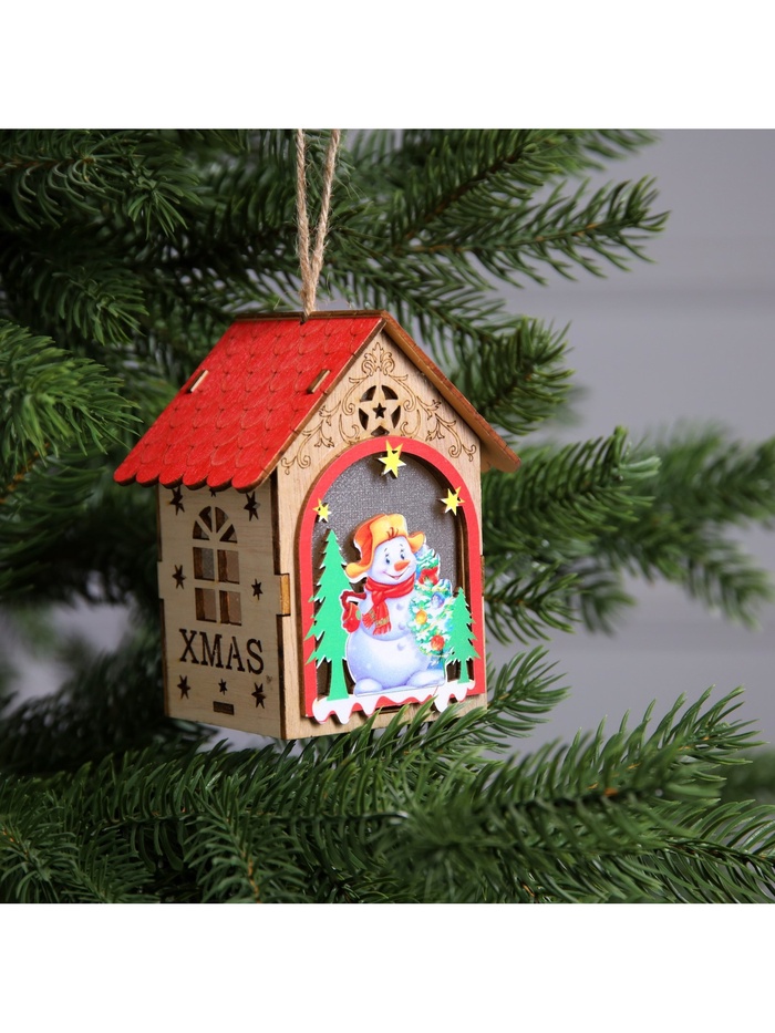 Изготовленный из дерева, этот домик со снеговиком освещает пространство тёплым белым свечением, создавая атмосферу праздника и сказки. Благодаря встроенному светодиоду, работающему от батареек, домик будет мягко светиться, добавляя волшебства в ваш интерьер. Размеры 11x8.5x7.5 см делают его идеальным для размещения на ёлке или в качестве декоративного элемента на полке.
