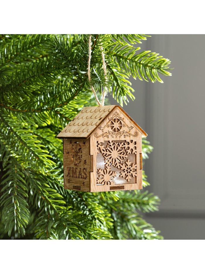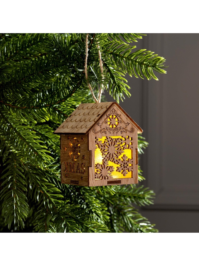 Ёлочная игрушка «Домик со снежинками», от батареек, свечение тёплое белое