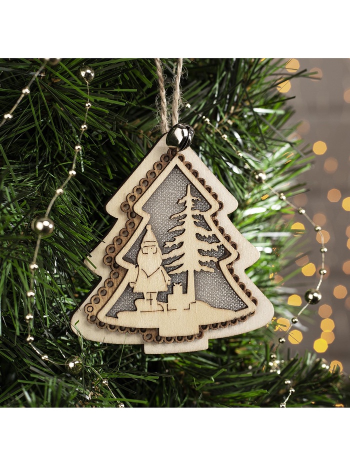 Ёлочная игрушка «Ёлочка с Дедом Морозом», от батареек, свечение тёплое белое