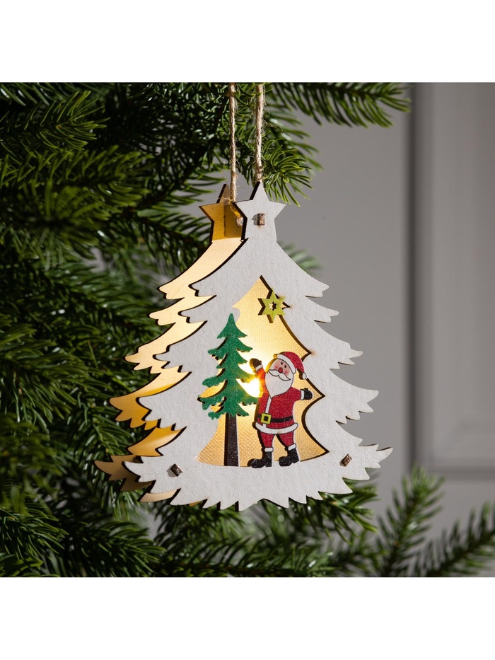 Ёлочная игрушка «Ёлочка с Дедом Морозом», от батареек, свечение тёплое белое