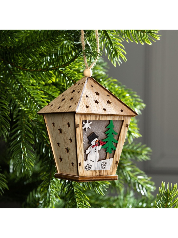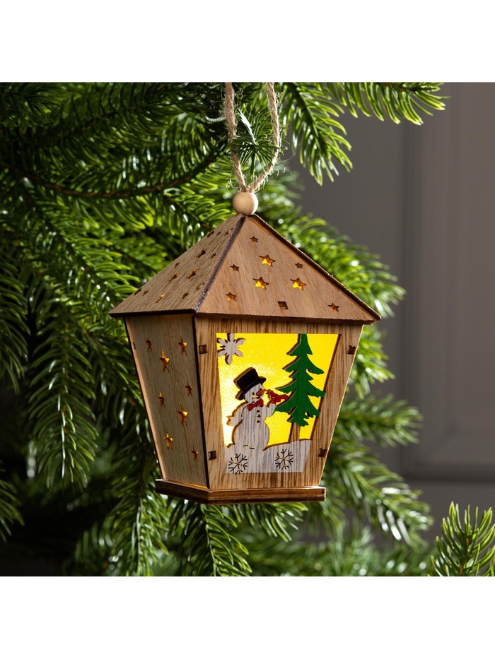 Ёлочная игрушка «Фонарь со снеговиком», от батареек, свечение тёплое белое
