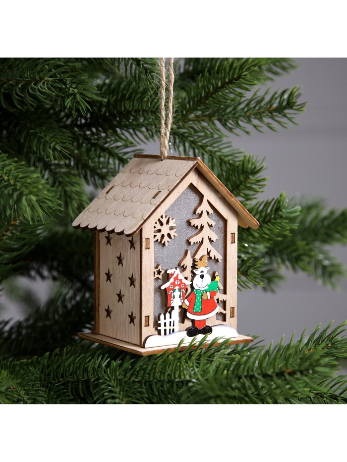 Изготовленный из дерева, домик с оленем освещает пространство тёплым белым сиянием, создавая уютную и праздничную атмосферу. Благодаря встроенному светодиоду, работающему от батареек, игрушка может быть размещена в любом месте, будь то ветки ёлки или полки в вашем доме. Её размеры 11х9.5х6.8 см делают удобной для размещения и достаточно заметной.