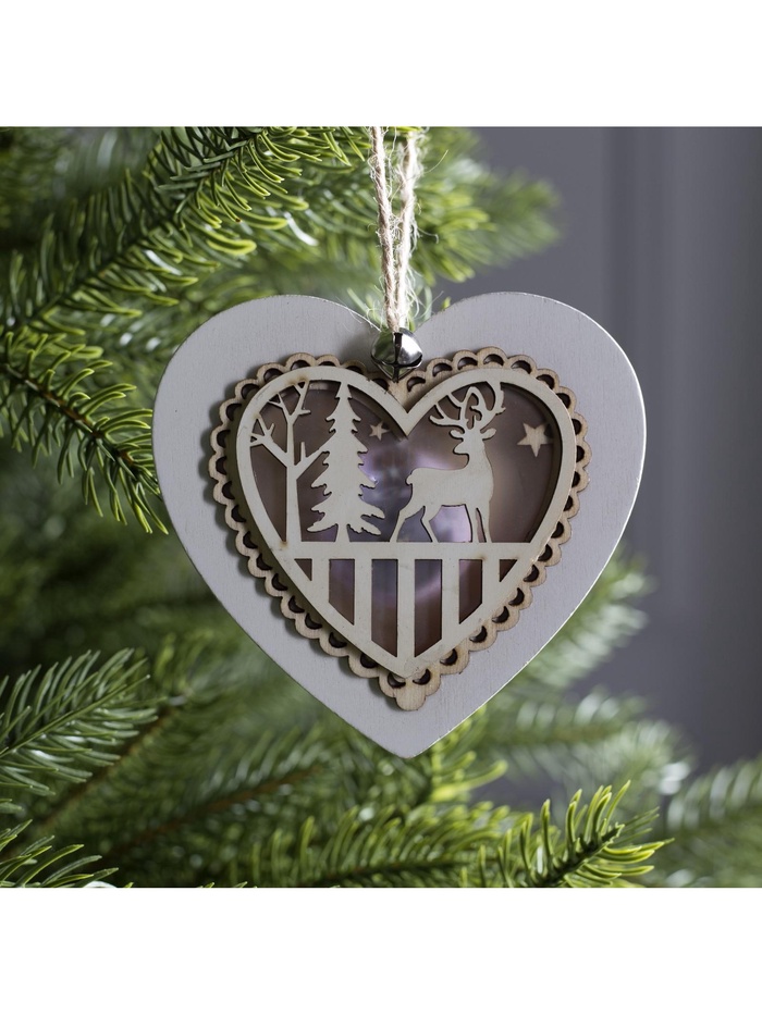 Ёлочная игрушка «Сердце с оленем», 10×10×2 см, 3 LED, от батареек, свечение тёплое белое