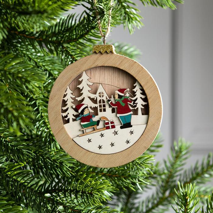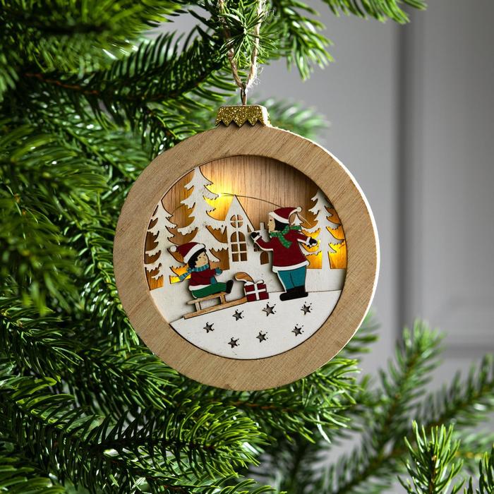 Ёлочная игрушка «Шар с детьми», от батареек, свечение тёплое белое