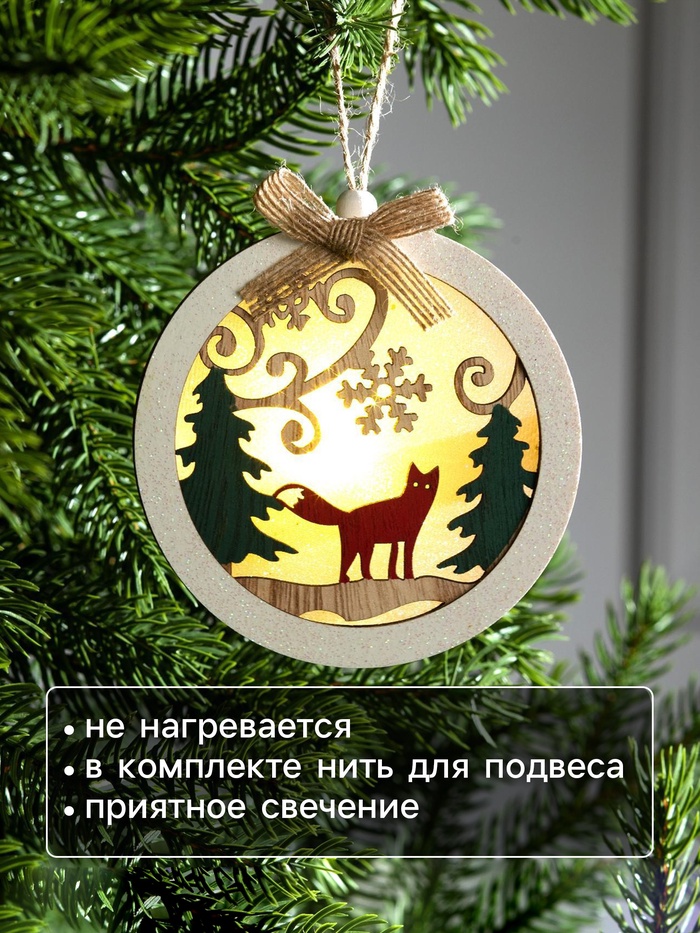 Ёлочная игрушка «Шар с лисёнком», от батареек, свечение тёплое белое