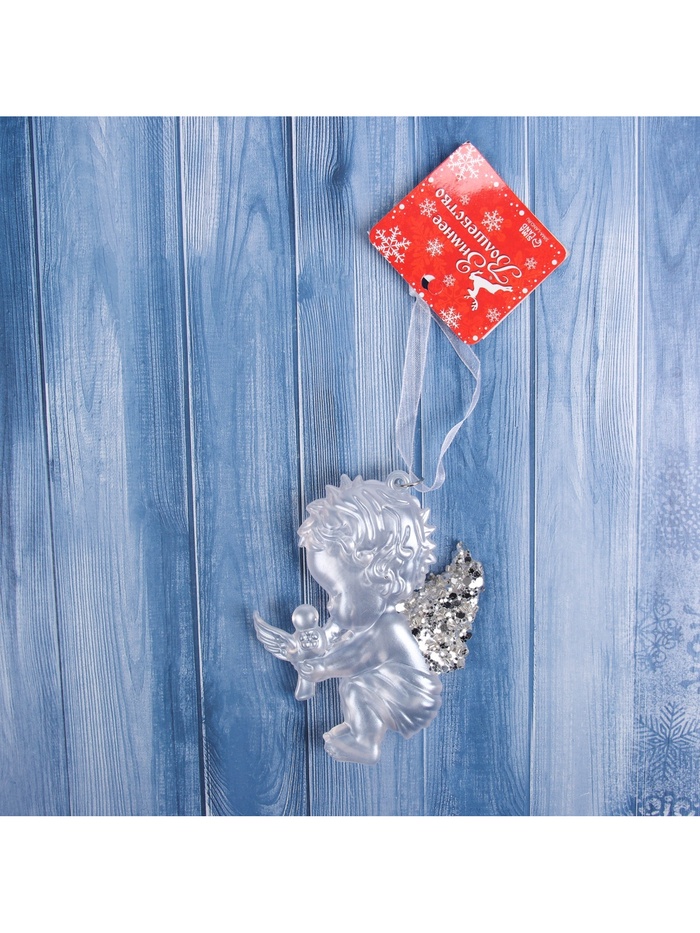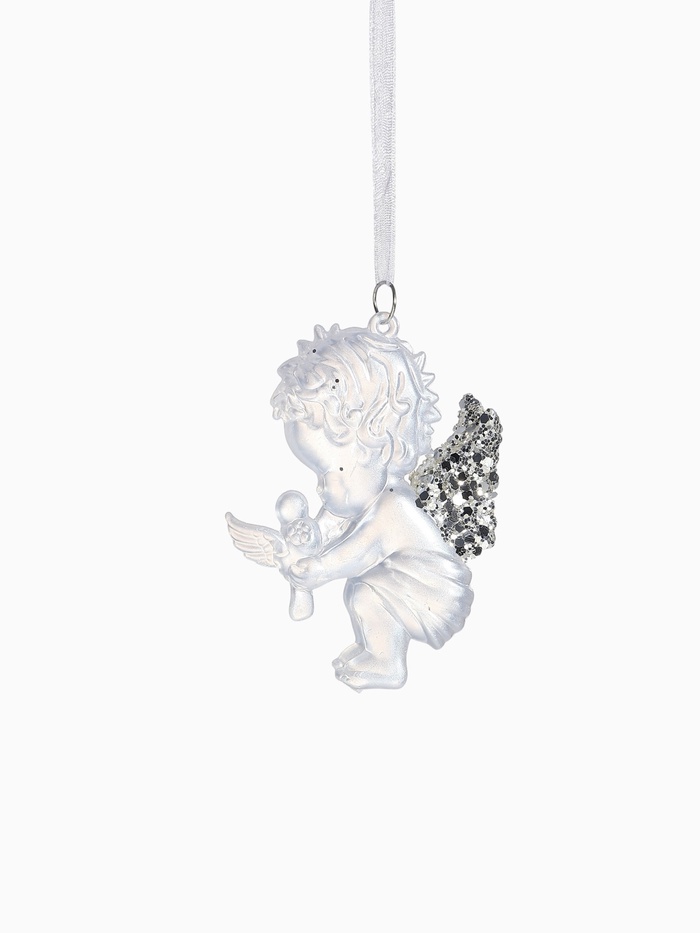 Белая ёлочная фигурка ангела с голубем станет символом чистоты и мира в новогоднем оформлении. Размером 10×7 см, она органично вписывается в стилистику ар-деко, классики и скандинавского дизайна, подчёркивая спокойствие и светлую атмосферу праздника.