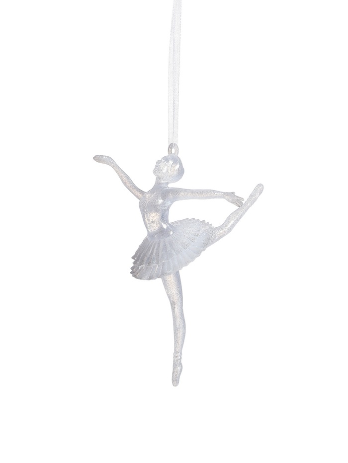 Белая балерина в танце — изящное украшение в скандинавском стиле, которое добавит новогоднему декору лёгкость и утончённость. Однотонное исполнение подчёркивает плавность линий и элегантность позы, создавая атмосферу спокойствия и гармонии.
