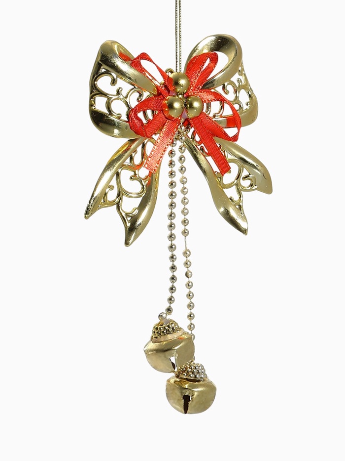 Золотисто-красный пластиковый бант с бубенчиками размером 11,5×10 см станет выразительным акцентом новогоднего декора в стиле барокко. Резная форма украшения подчёркивает изящество и праздничную атмосферу, добавляя тепла и блеска в оформление ёлки или интерьера.