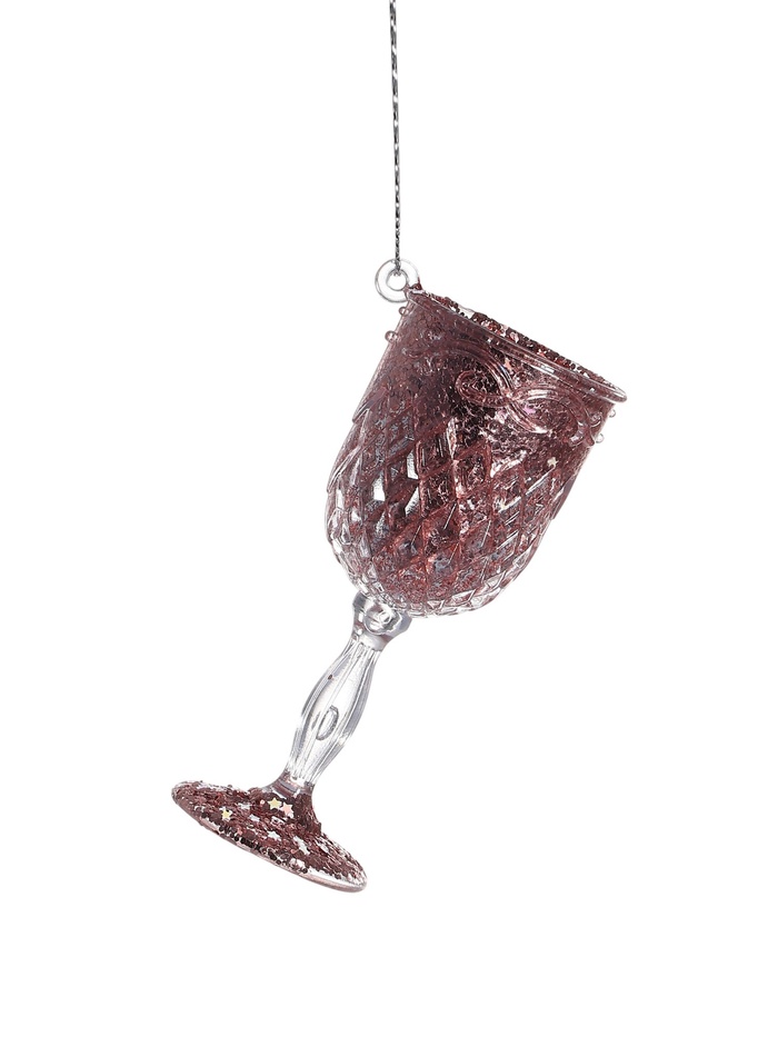 Прозрачно-розовый ёлочный бокал с резным узором отражает атмосферу советского стиля и шебби-шика, придавая праздничному оформлению изящность и лёгкость. Эта декоративная посуда станет изысканным акцентом на новогодней ёлке.