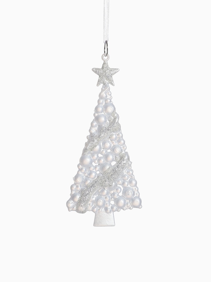 Белая блестящая ёлочная фигурка в форме ёлки станет стильным акцентом праздничного декора. Лаконичный однотонный дизайн в духе классики и скандинавского минимализма подчёркивает чистоту зимнего настроения и гармонично вписывается в интерьер, оформленный в датском и ар-деко стилях.