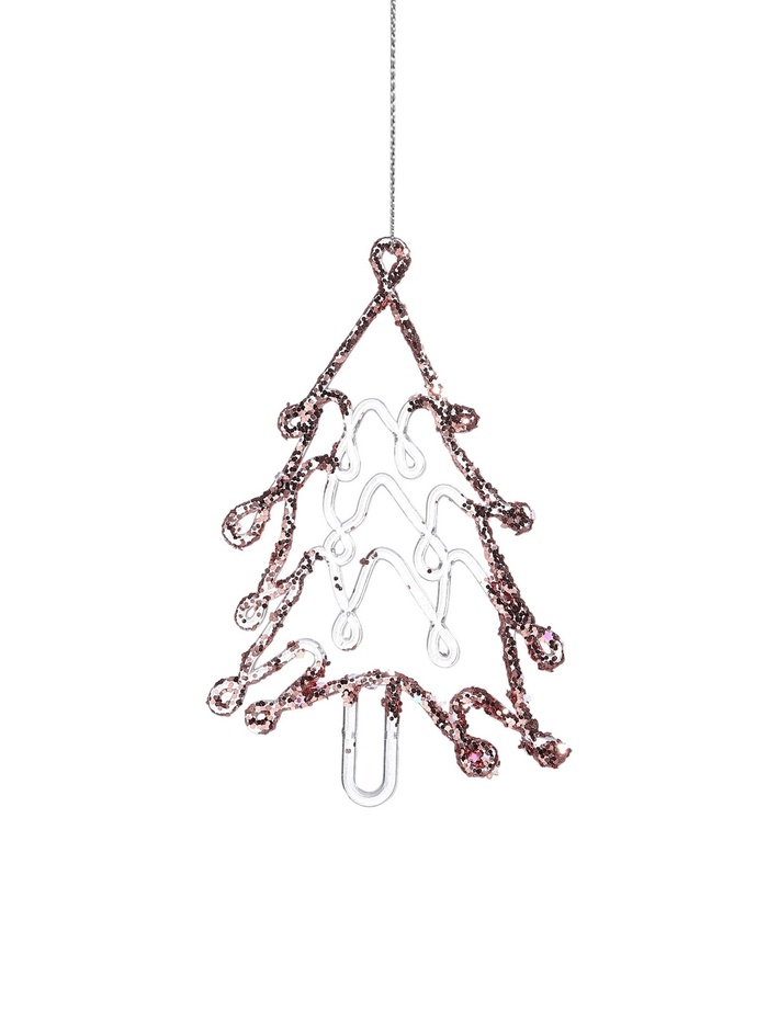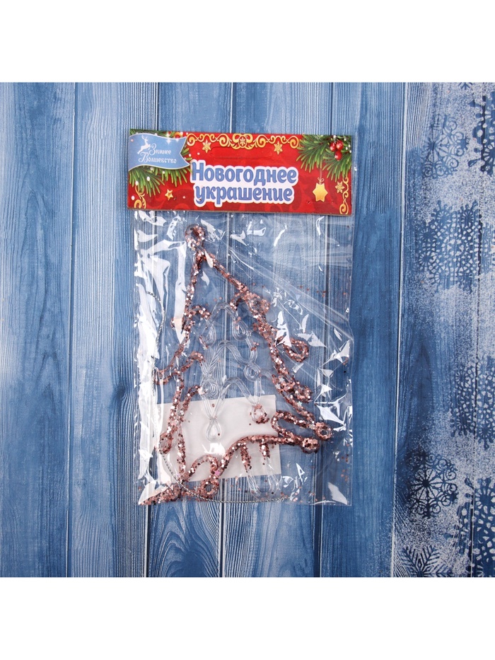Прозрачно-розовая ёлочная игрушка в форме резной ёлочки добавит нежности и лёгкости в новогодний декор. Её изящный дизайн в стиле шебби-шик подчёркивает праздничное сияние и создаёт атмосферу уюта.