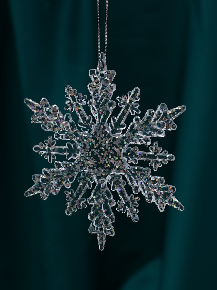 Пусть зима заговорит языком света. Ёлочная игрушка в виде снежинки — это воплощение чистоты, порядка и ожидания чуда. Прозрачный пластик и резной узор создают эффект застывшего инея — лаконично, элегантно, по-настоящему новогодне.