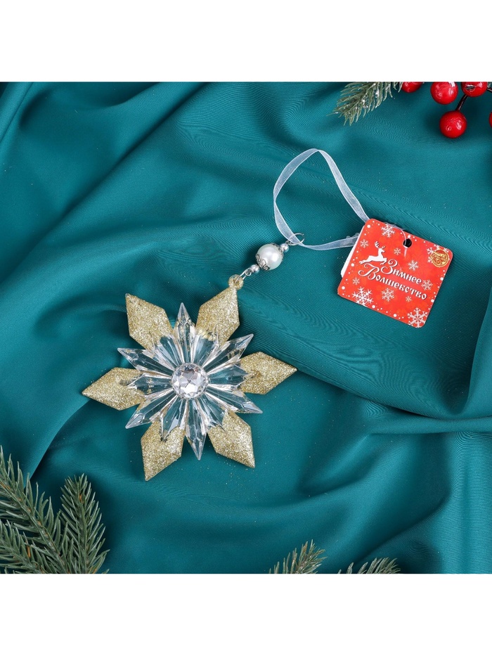 Пусть зимнее сияние засияет на вашей ёлке. Ёлочная игрушка «Снежинка с блеском» — это образ морозного узора, застывшего в свете праздничных гирлянд. Золотистый пластик с резными линиями создаёт эффект лучистого света — строго, ярко и по-настоящему новогодне.