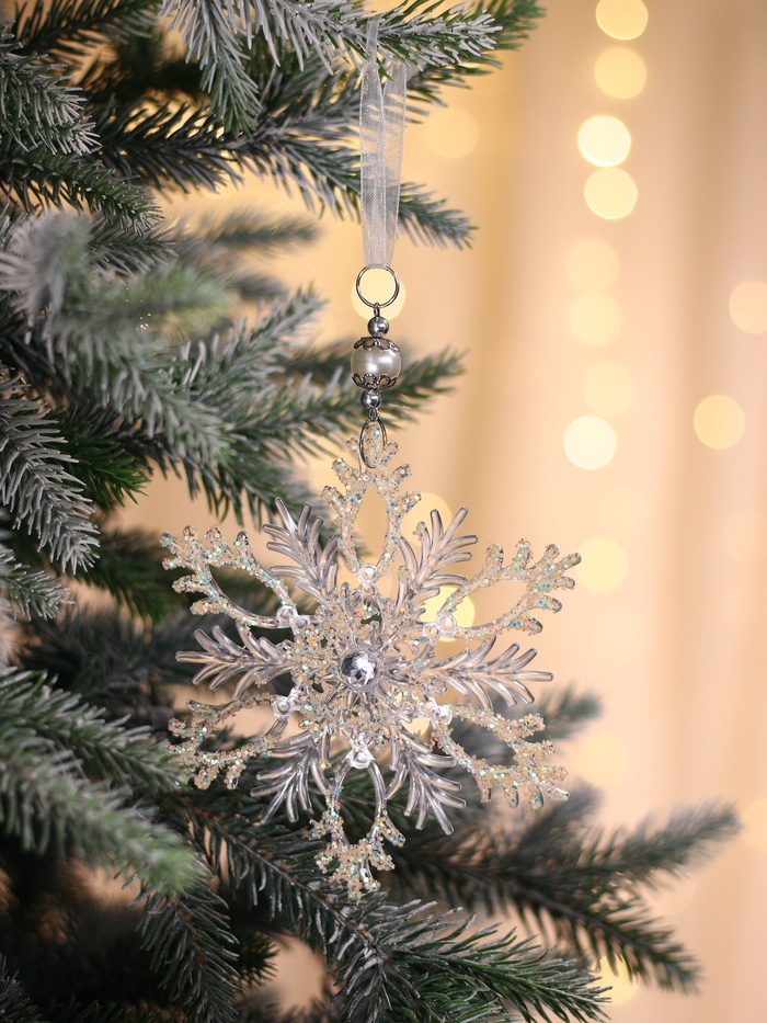 Эта снежинка станет заметным акцентом на ёлке, добавляя лёгкость и праздничное настроение уютному дому. Её форма помогает подчеркнуть красоту новогоднего убранства.