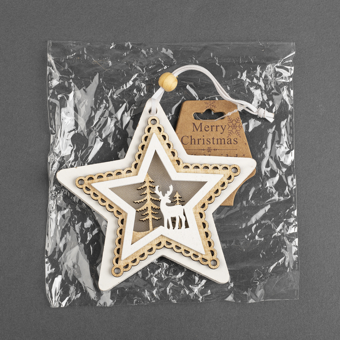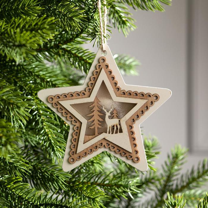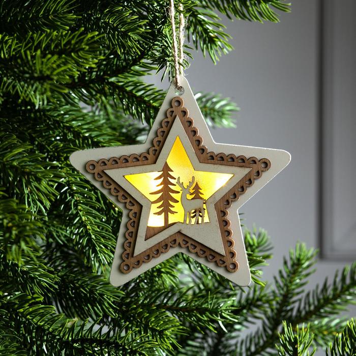 Ёлочная игрушка «Звезда с оленем», от батареек, свечение тёплое белое