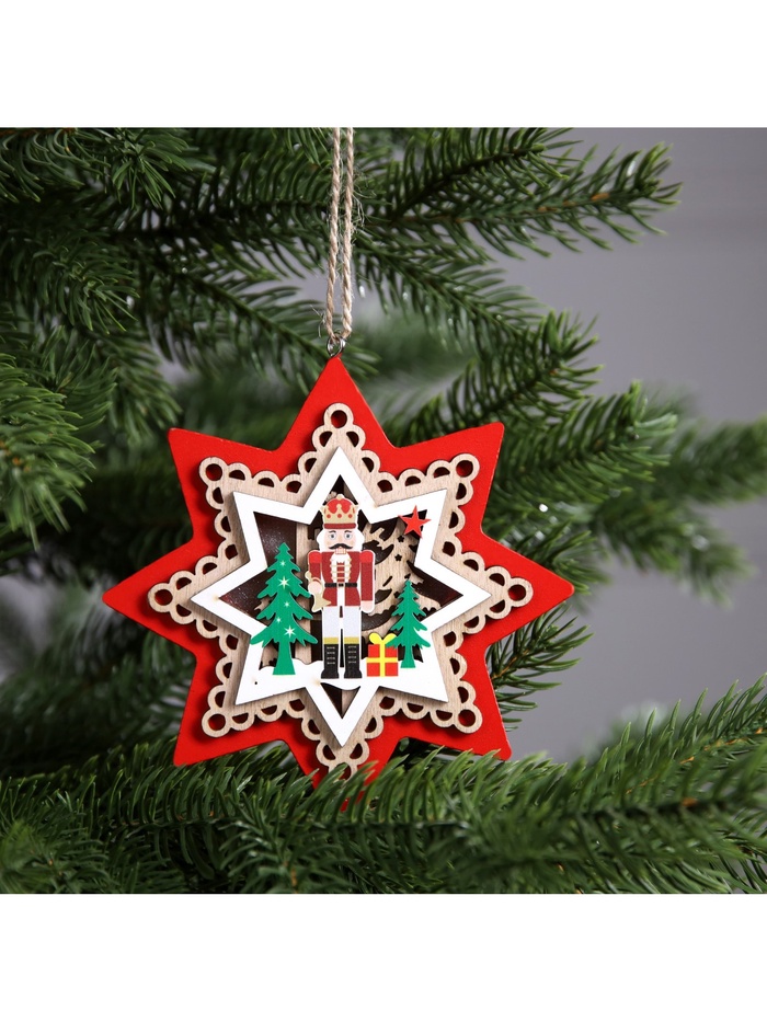 Изготовленная из дерева, звезда с Щелкунчиком освещает пространство тёплым белым сиянием, создавая уютную и праздничную атмосферу. Благодаря встроенному светодиоду, работающему от батареек, игрушка может быть размещена в любом месте, будь то ветки ёлки или полки в вашем доме. Её размеры 10x10 см делают её удобной для размещения и достаточно заметной.
