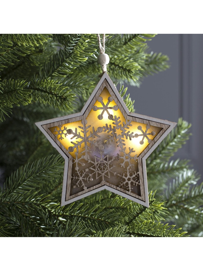 Ёлочная игрушка «Звезда в снежинках», от батареек, свечение тёплое белое