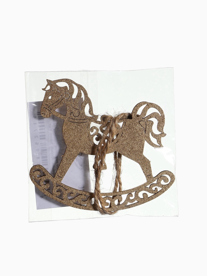 - Элегантный золотистый цвет: Лошадка выполнена в нежном золотом оттенке, который добавляет блеска и тепла в атмосферу праздника, прекрасно сочетаясь с другими элементами декора.