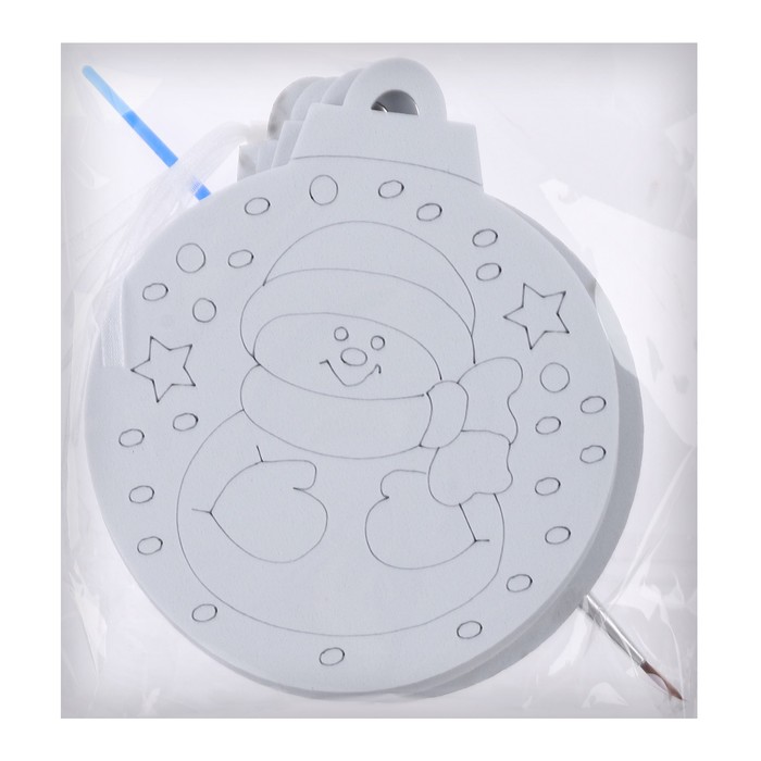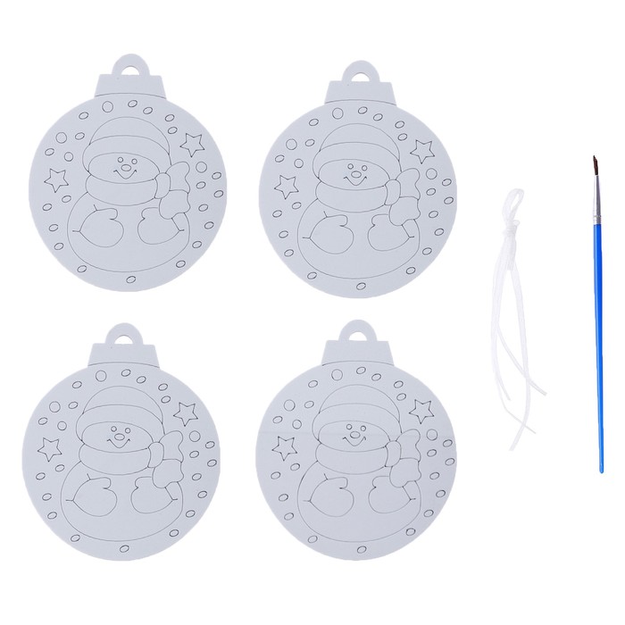 Ёлочное украшение под раскраску «Снеговик» размер: 10×12×0,5 см, 4 шт., краски 6 цв по 2 мл, кисть