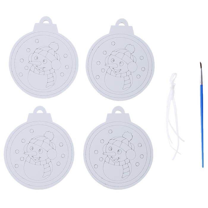 Ёлочное украшение под раскраску «Весельчак» размер: 10×12×0,5 см, 4 шт., краски 6 цв по 2 мл,кисть