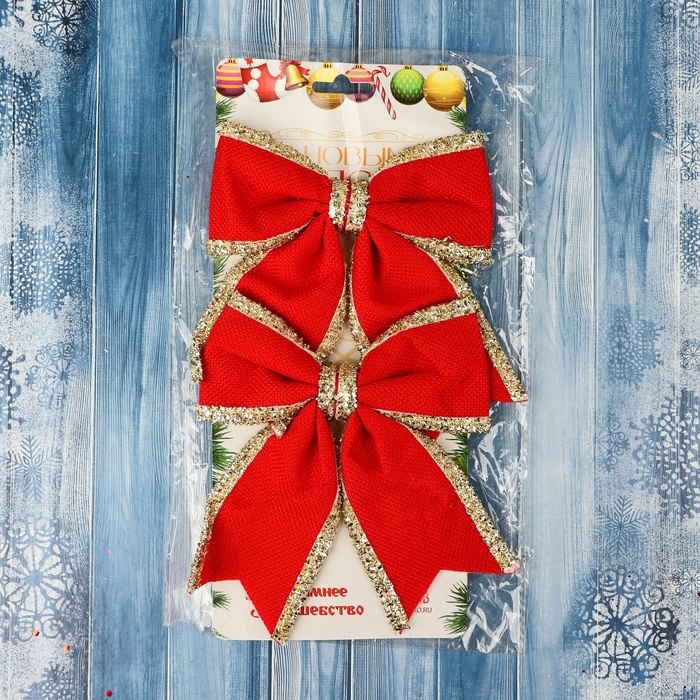 Превратите елку в центр зимнего сияния – красные текстильные банты в стиле новогоднего барокко! Красные новогодние банты – набор из 2 игрушек, сочетающих пышность барокко и современную прочность. Их размер – 14×14 см, что делает акцент заметным, но не перегружает композицию.