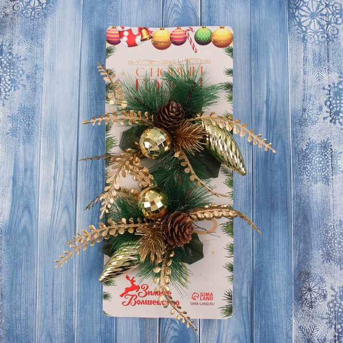 Набор из двух ёлочных украшений из пластика в золотистом цвете включает бант и сосульку с наполнением. Размеры 11×11 см делают их заметными элементами праздничного декора в классическом и барочном стилях, придавая ёлке объём и изящество.