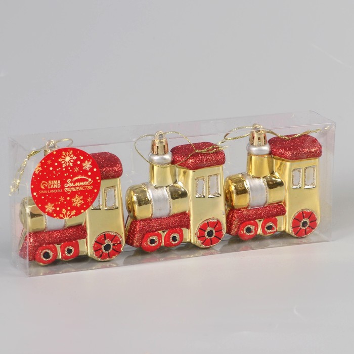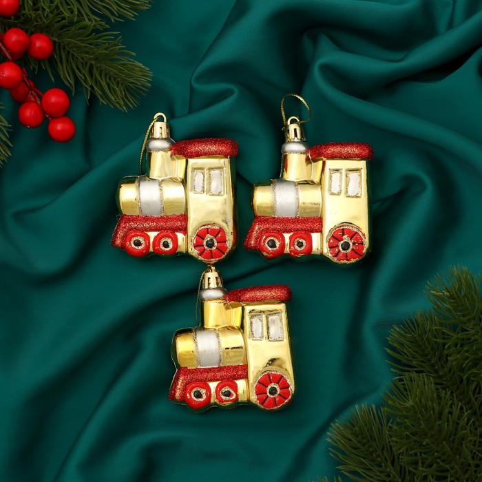 Добавьте динамики в праздничный декор – золото-красные паровозики в стиле барокко и советского дизайна для новогодней елки! Золотые новогодние паровозики – набор из 3 игрушек, сочетающих пышность новогоднего барокко и ностальгию по советским праздникам. Их размер – 6,5×7 см, что делает акцент заметным, но не перегружает композицию.
