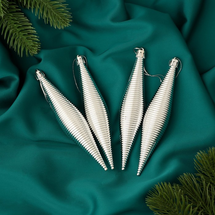 Создайте зимнюю сказку на елке – серебряные сосульки! Серебряные новогодние сосульки – набор из 4 игрушек, которые сочетают строгость скандинавского дизайна, графику ар-деко и ностальгию по советским праздникам. Их высота – 15 см, что делает каждую заметным акцентом без перегрузки композиции.