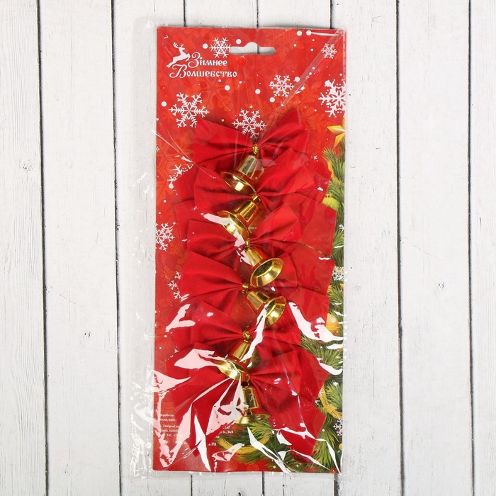 Ёлочные игрушки «Бантик с колокольчиком», 10 см, 6 шт., красные, текстиль — это яркий и ритмичный акцент для новогоднего декора. Набор объёмных бантов с приятным звоном подходит для ёлки, гирлянды или подарочной композиции — классическое решение для тех, кто ценит традиции, порядок и атмосферу настоящего праздника без излишеств.