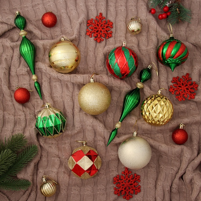 Новогодние шары «Ассорти» — это яркий и разнообразный набор для украшения ёлки. В комплекте 42 пластиковые игрушки в красно-зелёной гамме с рисунком, выполненные в разных стилях: от новогоднего барокко до советского дизайна и фьюжн. Это решение для тех, кто любит создавать праздничную атмосферу с душой и историей.