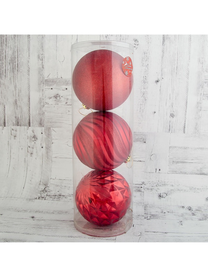 Набор из трёх ёлочных шаров в насыщенном красном цвете станет великолепным дополнением к вашему новогоднему декору. С диаметром 15 см, эти игрушки идеально подходят для создания яркого и праздничного настроения на ёлке. Изготовленные из прочного пластика, они обеспечивают долговечность и лёгкость, что делает их удобными для использования и хранения.