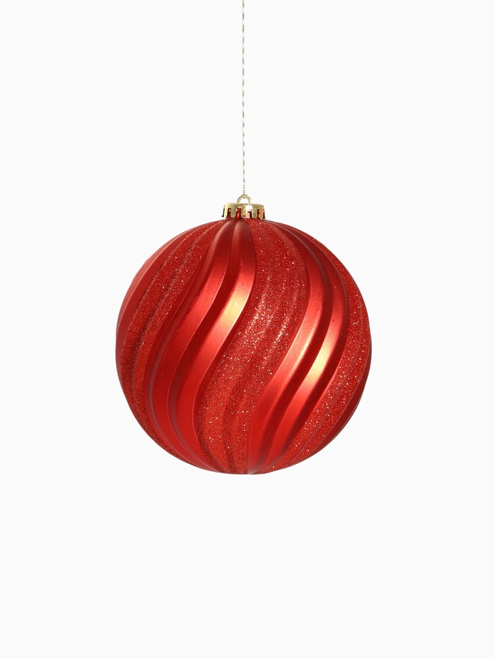 - Три однотонных шара, выполненных в ярком красном цвете, привлекают внимание и создают эффектный акцент.