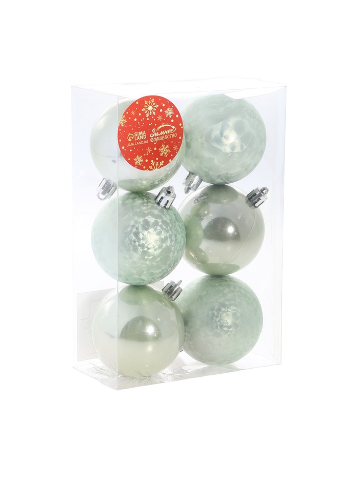 Набор из 6 зелёных шариков диаметром 5,5 см создаёт лёгкий и уютный акцент в новогоднем интерьере. Однотонный дизайн сочетает в себе черты шебби-шик и датского стилей, подчёркивая естественную простоту и изящество праздничного украшения.