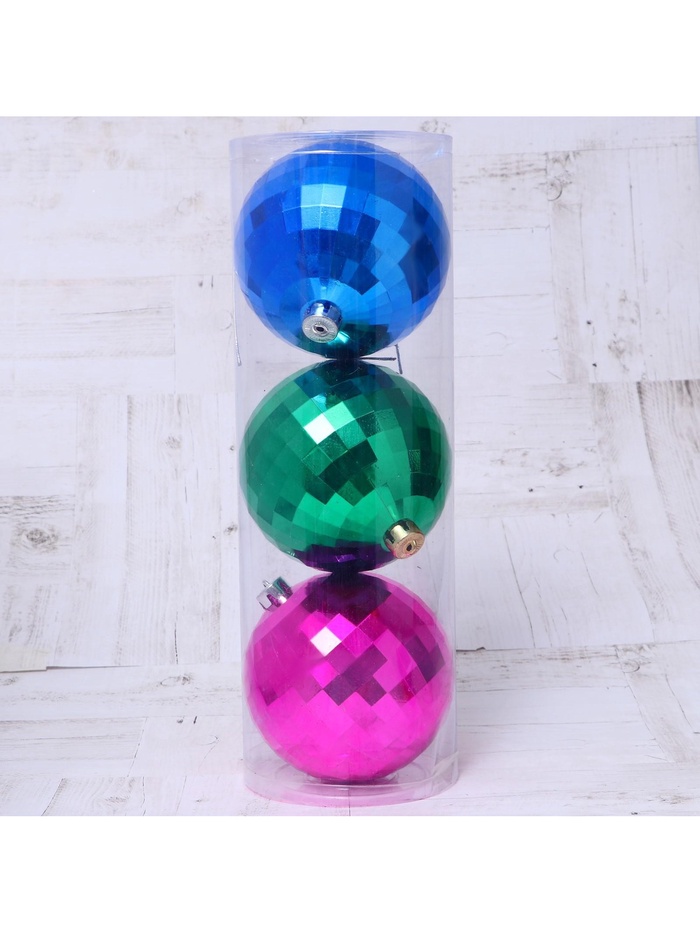 Набор из трёх ярких новогодних шаров диаметром 15 см станет ярким акцентом на вашей ёлке, придавая ей неповторимый стиль и атмосферу праздника. Эти шары в стиле фьюжн с однотонным дизайном идеально подойдут для создания оригинального новогоднего декора. Микс цветов добавляет живости и динамики, создавая ощущение веселья и радости.