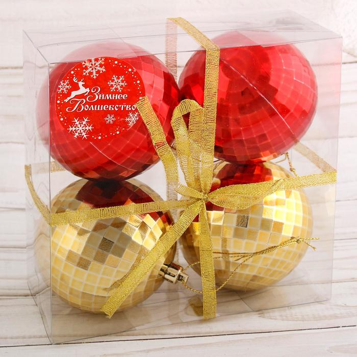 Новогодние шары «Диско» — это праздничный акцент для тех, кто любит яркие образы и атмосферу зимнего торжества. Набор из 4 пластиковых игрушек диаметром 8 см оформлен в красно-золотистой гамме с однотонной поверхностью. Украшения выполнены в стиле новогоднего барокко и добавляют ёлке настроения и роскоши без лишней пестроты.