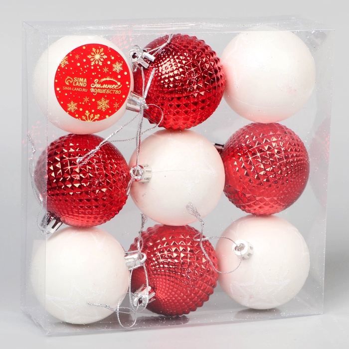 Набор из 9 однотонных ёлочных шаров с красно-белой цветовой гаммой и сетчатой текстурой выполнен в скандинавском стиле. Эти лёгкие пластиковые украшения диаметром 5,5 см добавят сдержанную элегантность и уют в новогодний декор.