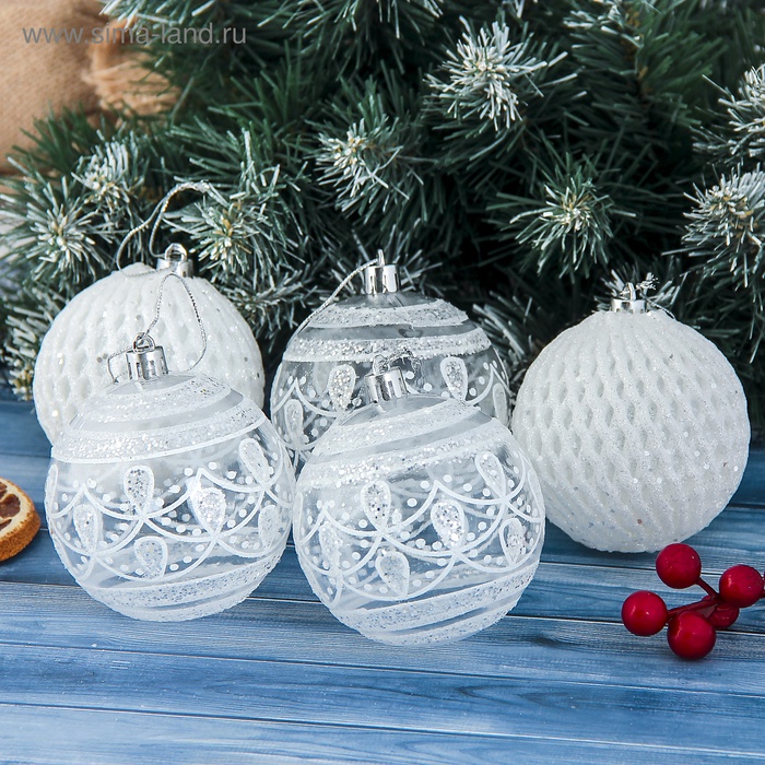 Большие новогодние шары с узором «Изморозь» — это стильное и атмосферное украшение для праздничного интерьера. Набор из 5 пластиковых игрушек диаметром 8 см декорирован рисунком, напоминающим тонкие ледяные узоры на стекле. Такие детали подойдут как для классической ёлки, так и для современного скандинавского или датского оформления.