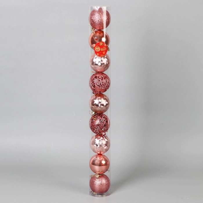 Розовые ёлочные шары диаметром 7 см в наборе из 9 штук — элегантное украшение в стиле шебби-шик для новогоднего интерьера. Однотонное матовое покрытие создаёт мягкий акцент, подчёркивая нежность и гармонию праздничного декора.