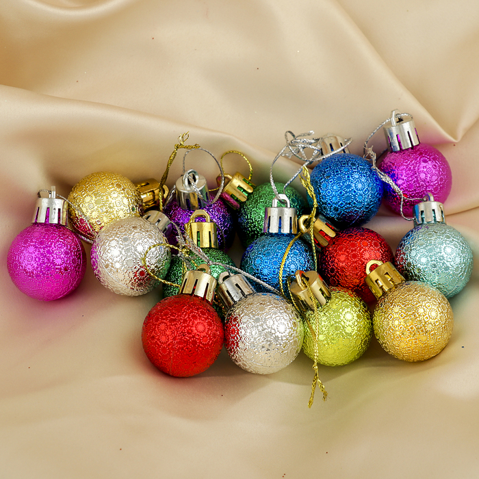 - Диаметр — 3 см, компактные размеры для плотного или фонового украшения дерева.
